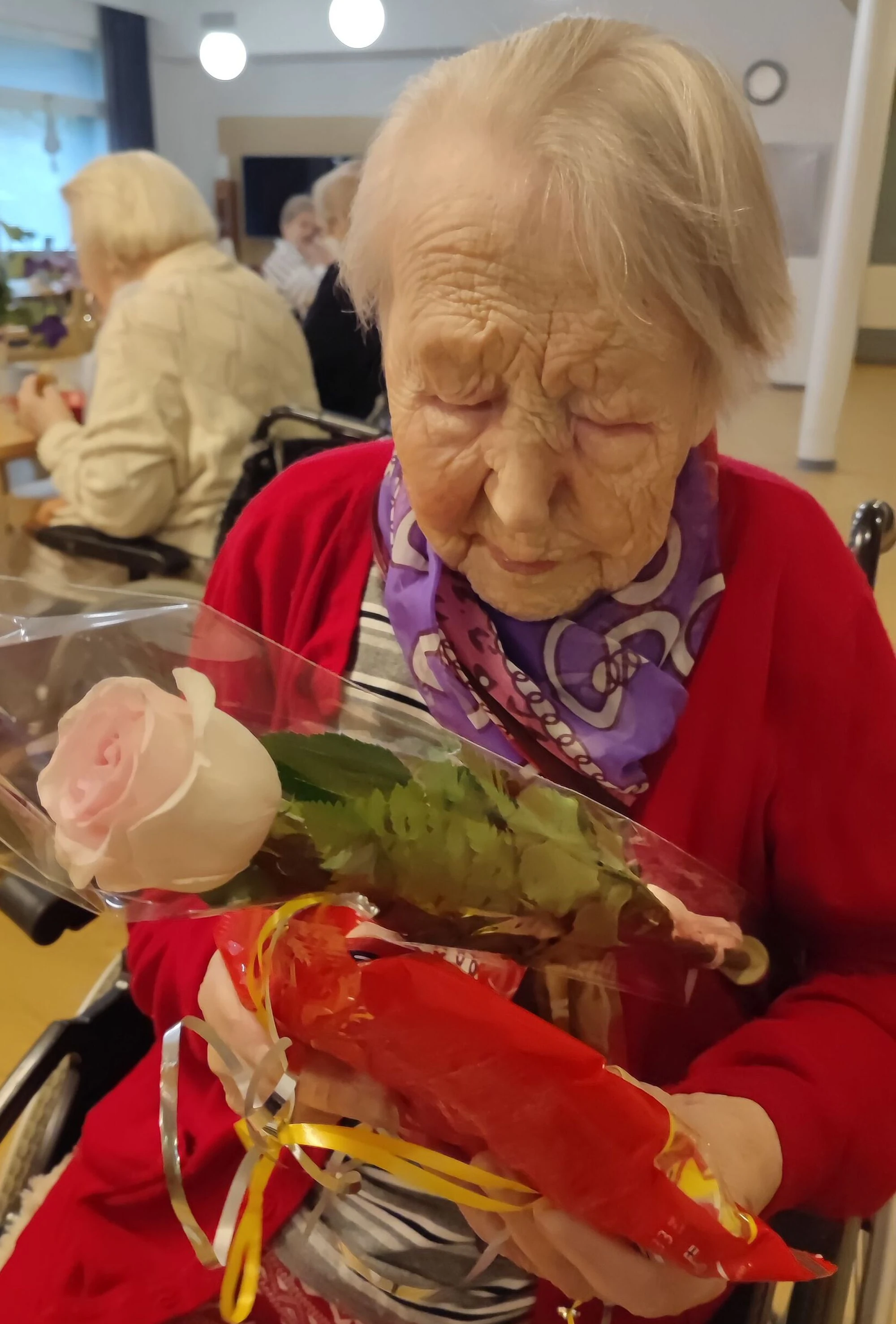 ![]() Helvi Kissala on her 110th birthday in 2023 | |
