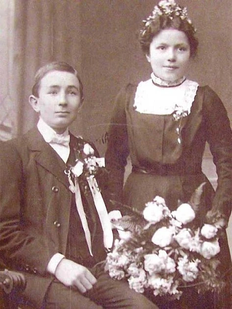Marie Kráslová (aged 16) with her brother in 1914