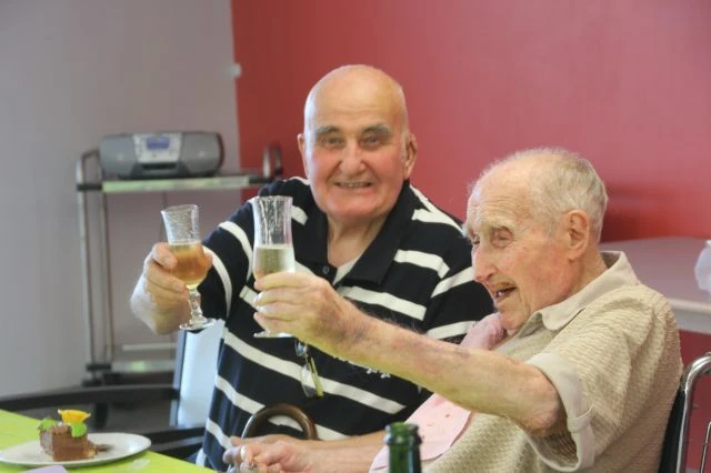 ![]() Gouzy (right) at the age of 109. | |